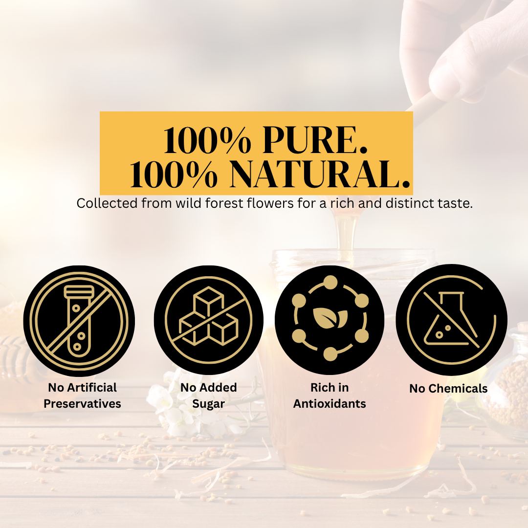 With its robust, earthy flavor and naturally nourishing profile, this honey is a perfect everyday choice for smoothies, yogurt, warm drinks, or a simple morning spoonful.
