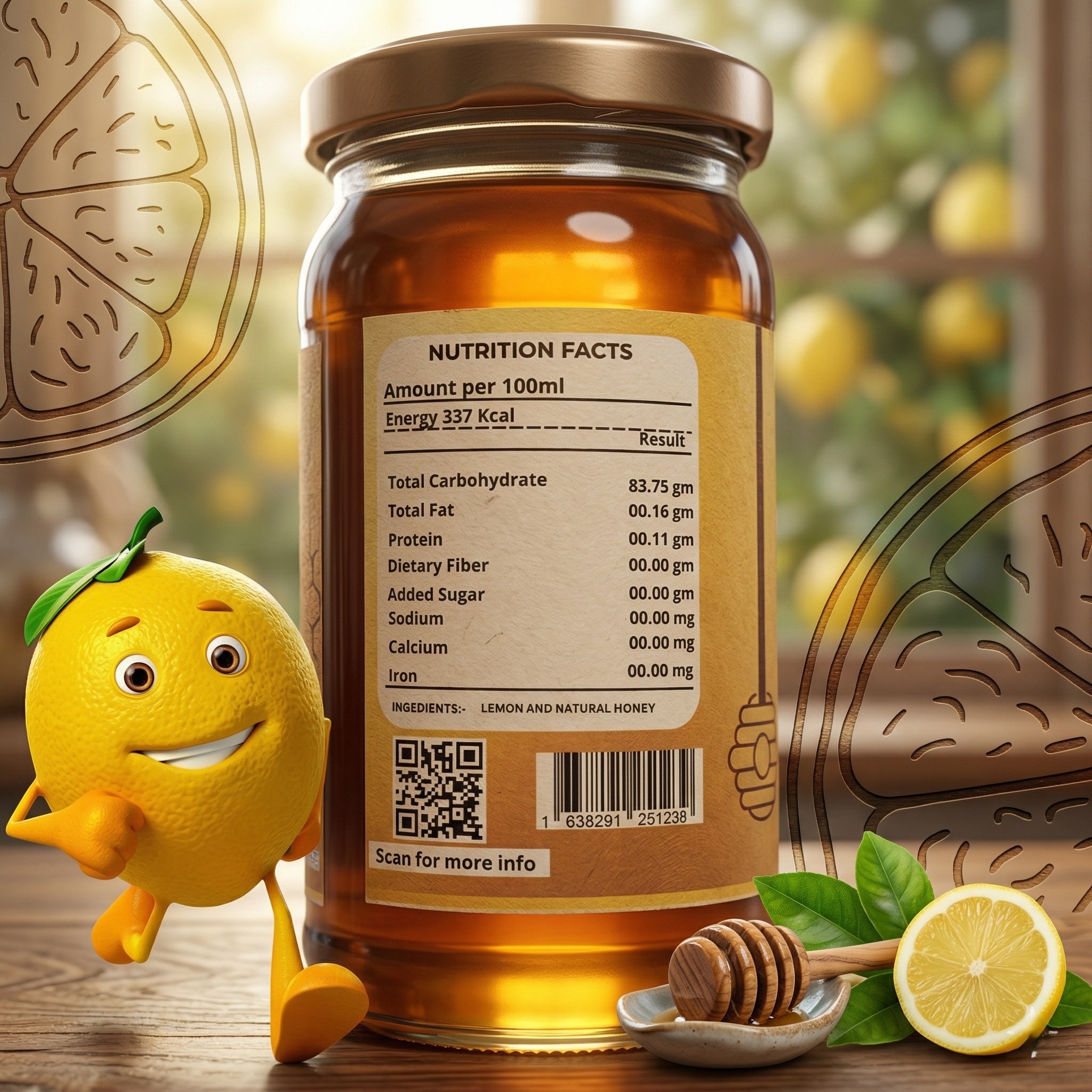 We believe in absolute transparency when it comes to your health. Our packaging details everything you need to know about the nutritional profile of our Lemon Honey.